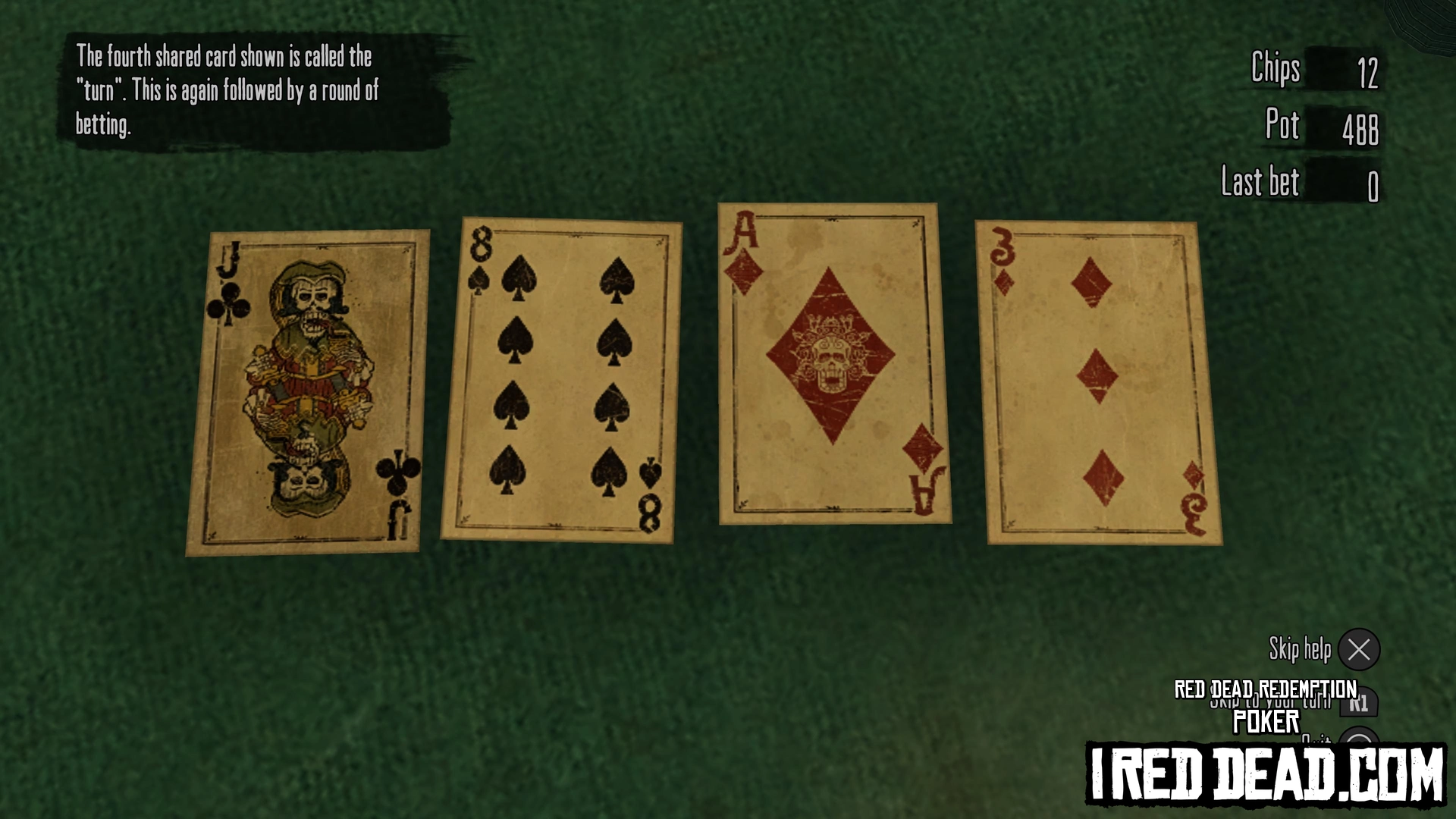 Poker is available throughout Red Dead Redemption and is one of the most common gambling minigames in the game world. Poker tables are usually found inside saloons, and while it can be a reliable way to earn money, it also carries the risk of losing large sums if you play poorly.