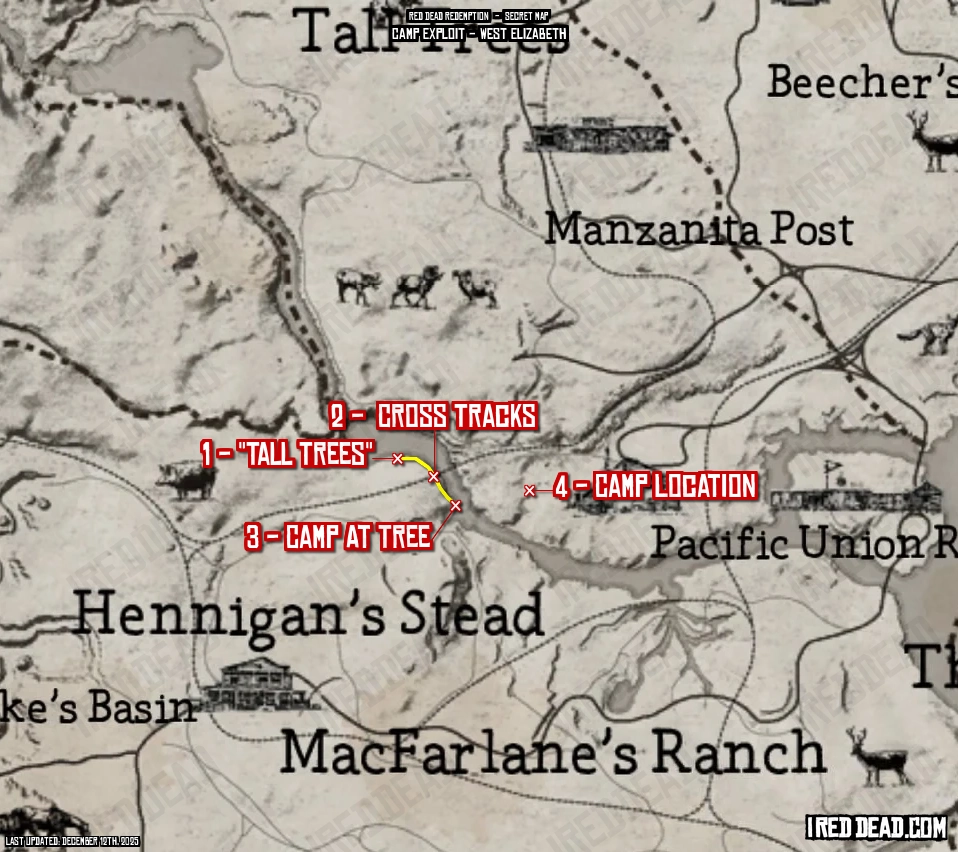 This exploit allows you to set up a camp which will automatically transport you to West Elizabeth, leaving you free to explore Tall Trees, Great Plains and Blackwater from the second you're off-mission.