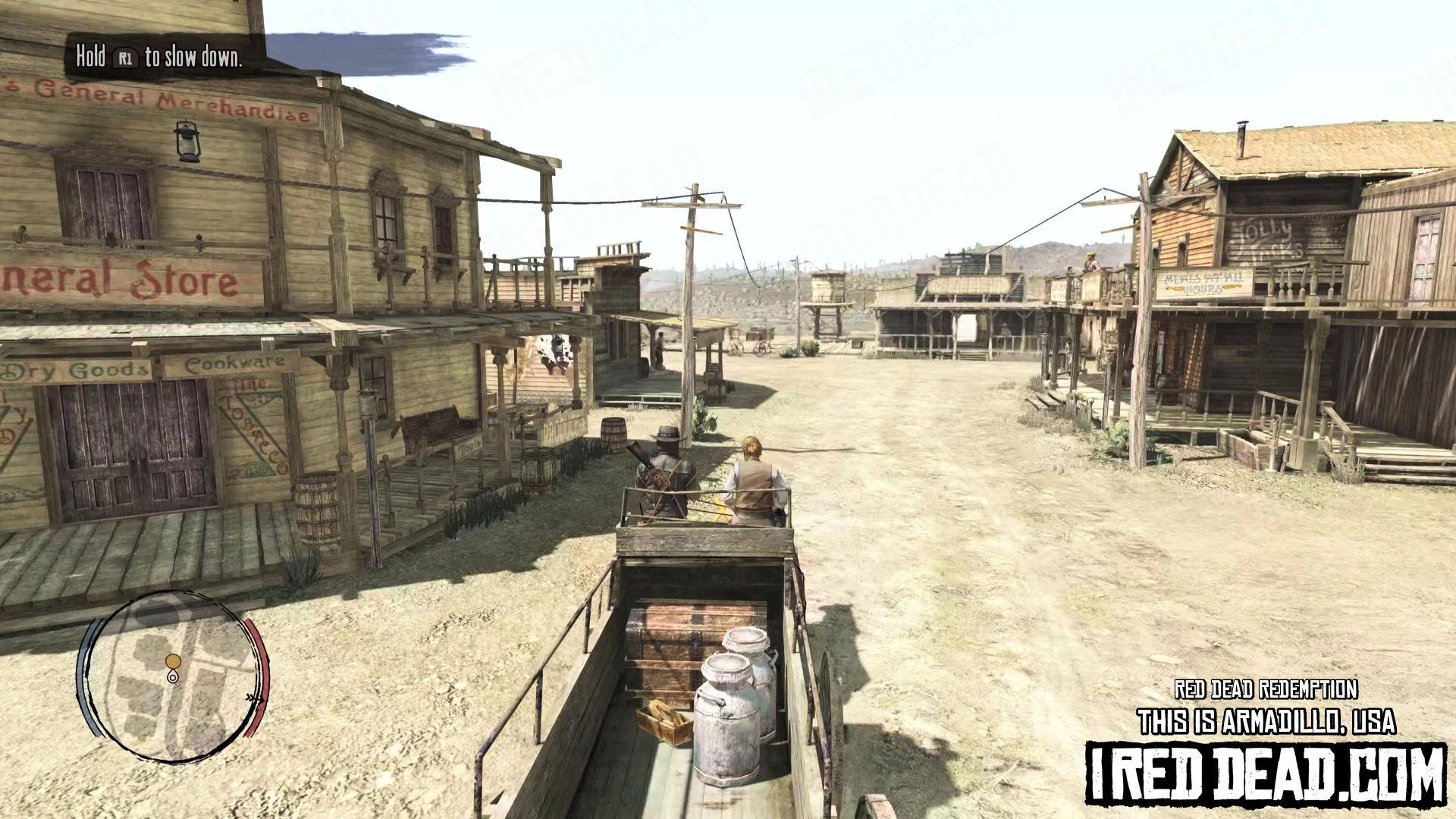 Eventually you'll reach the town of Armadillo as the game suggests you "Hold R1 to slow down".