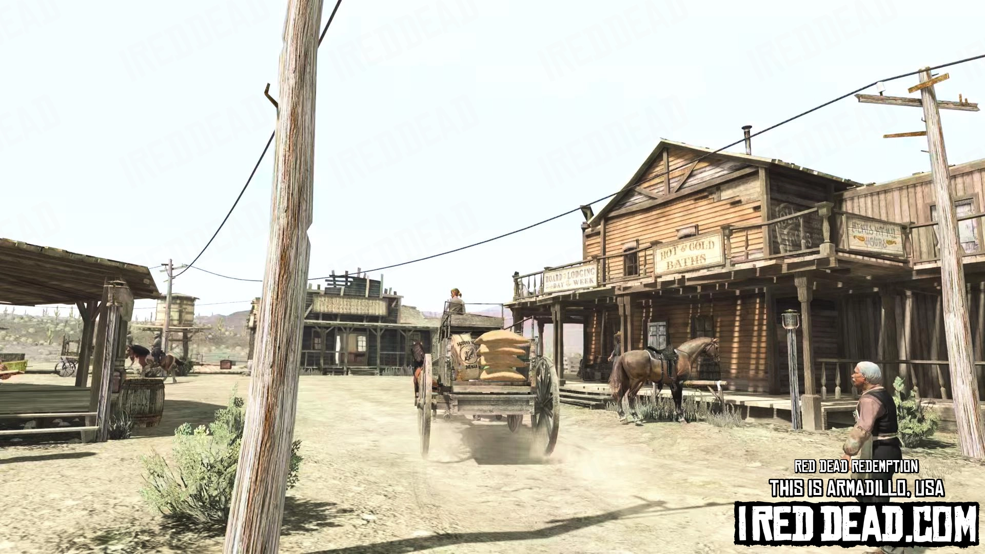 Bonnie them climbs back onto her wagon, now full of supplies and tells John he should have a look around Armadillo. She also suggests he could take a stagecoach back to the ranch later.