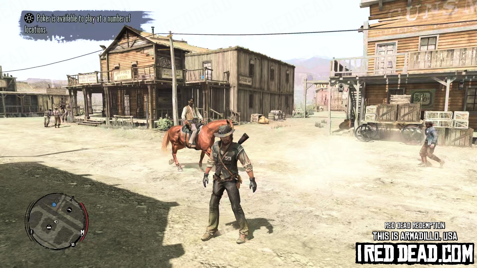 You can also head to the Gunsmiths, General Store and Doctors to purchase weapons, ammo and items if you have the money. Given you probably won't have a lot at this point, it could be worth heading North past Armadillo into the flat desert area and doing a spot of hunting. You can sell any animal parts to the General Store for money which you can put towards the items they sell. Purchasing the "Rabbit's Foot" as soon as possible will probably give the biggest benefit for the smallest outlay as it'll increase how much money you find for the remainder of the game.