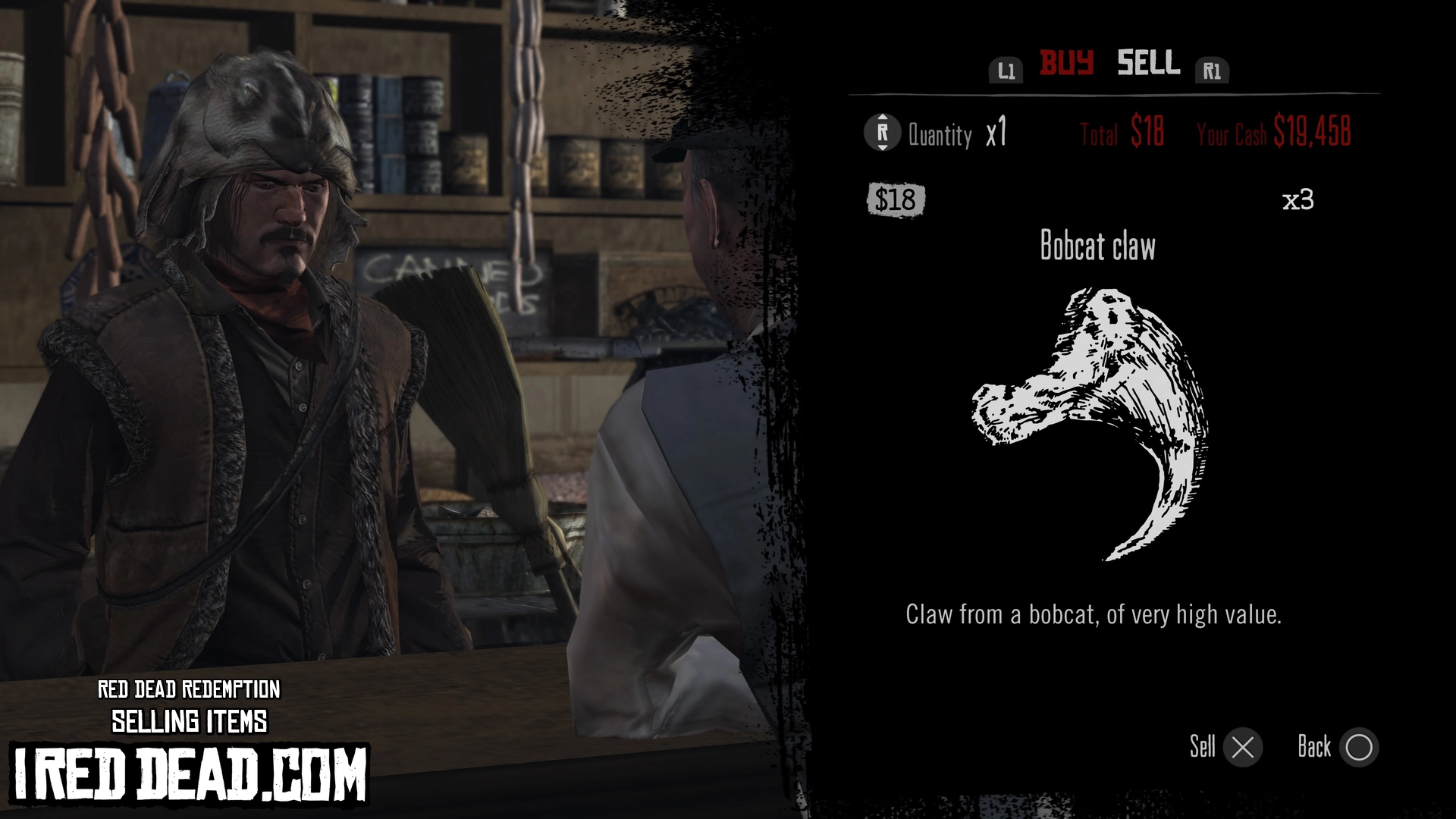 Red Dead Redemption Selling Items Bobcat Claw