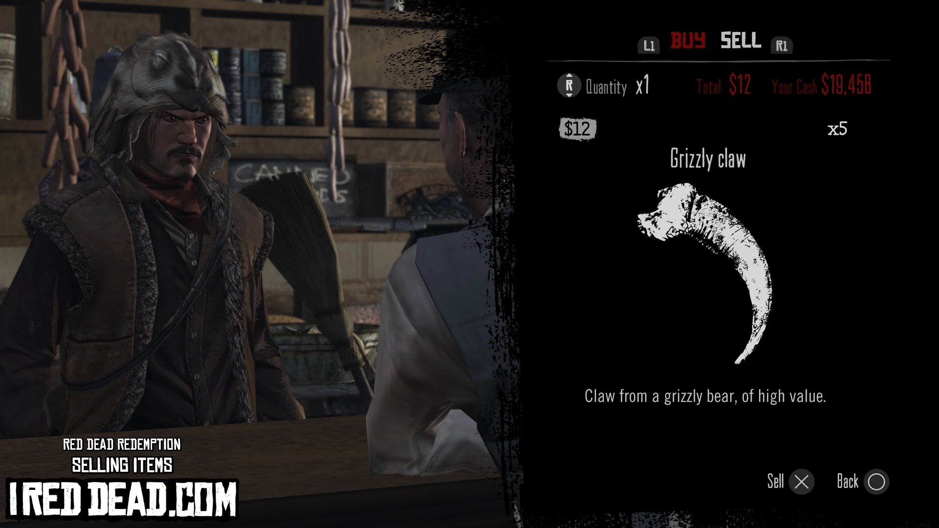Red Dead Redemption Selling Items Grizzly Claw
