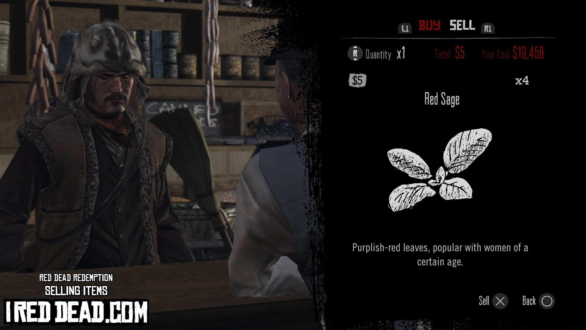 There are 102 items you can acquire and sell in Red Dead Redemption across animals, plants and treasures. Use our handy dynamic guide to find out where to sell them for the biggest returns based on your Honor Ranking.