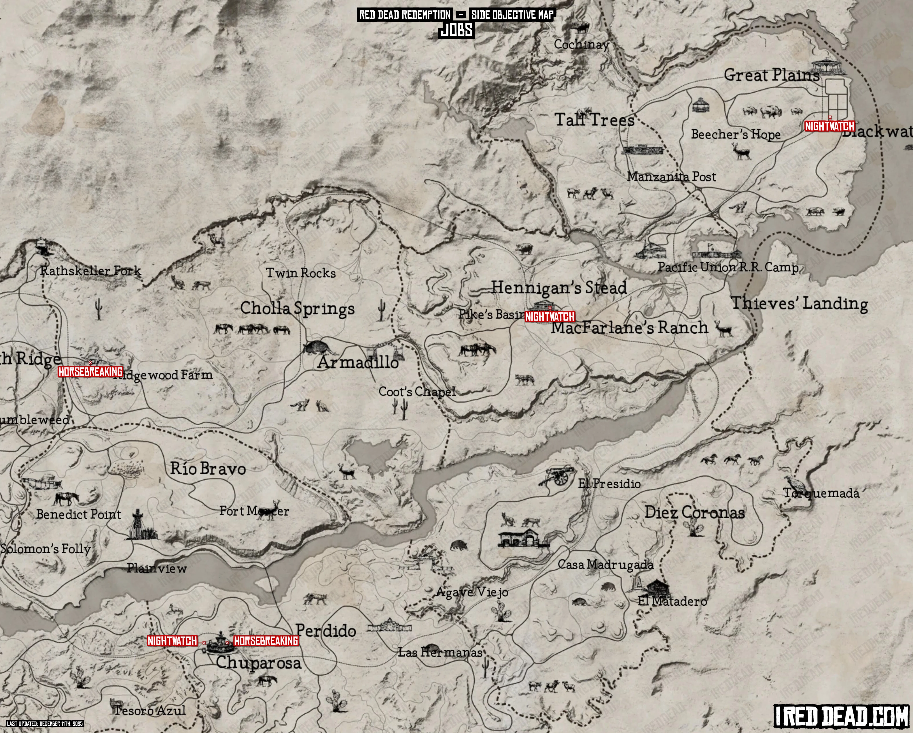 Locations of all Nightwatch and Horse Breaking jobs in Red Dead Redemption