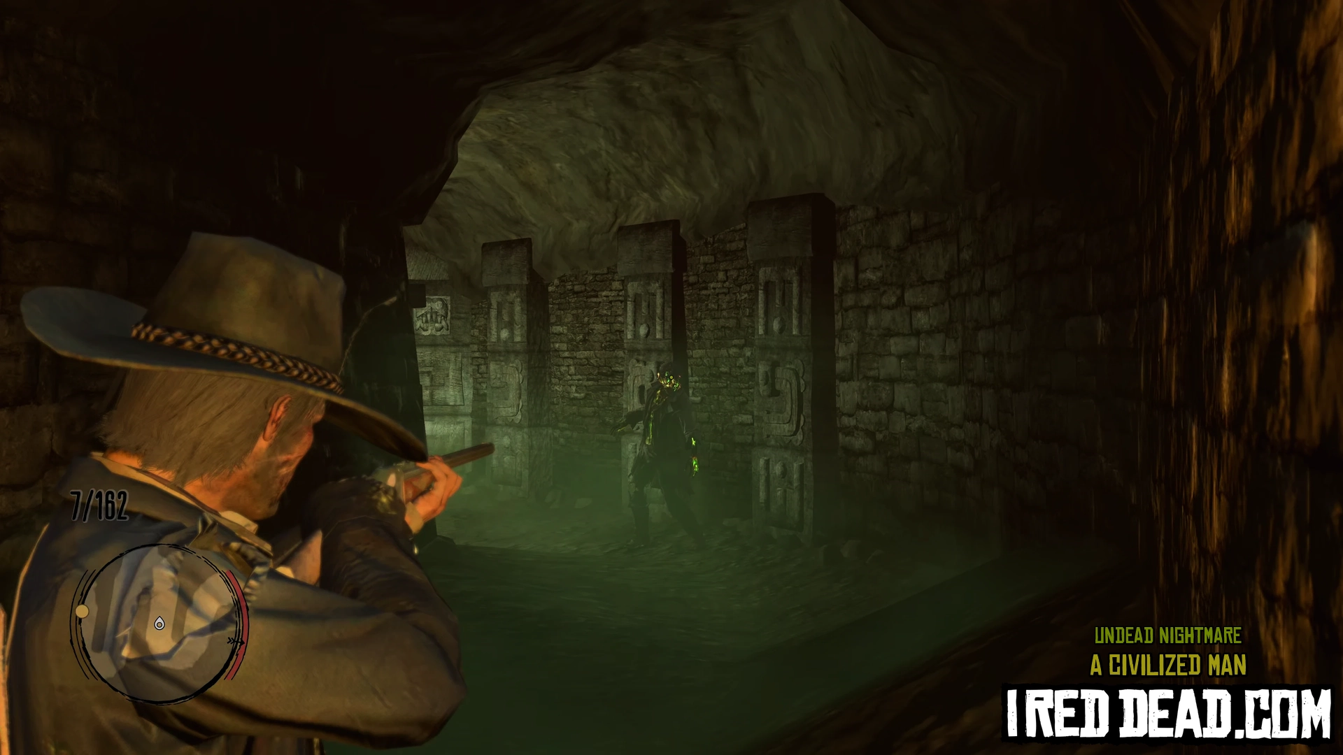 Head down and around through the catacombs until you reach a room with three zombies in it.