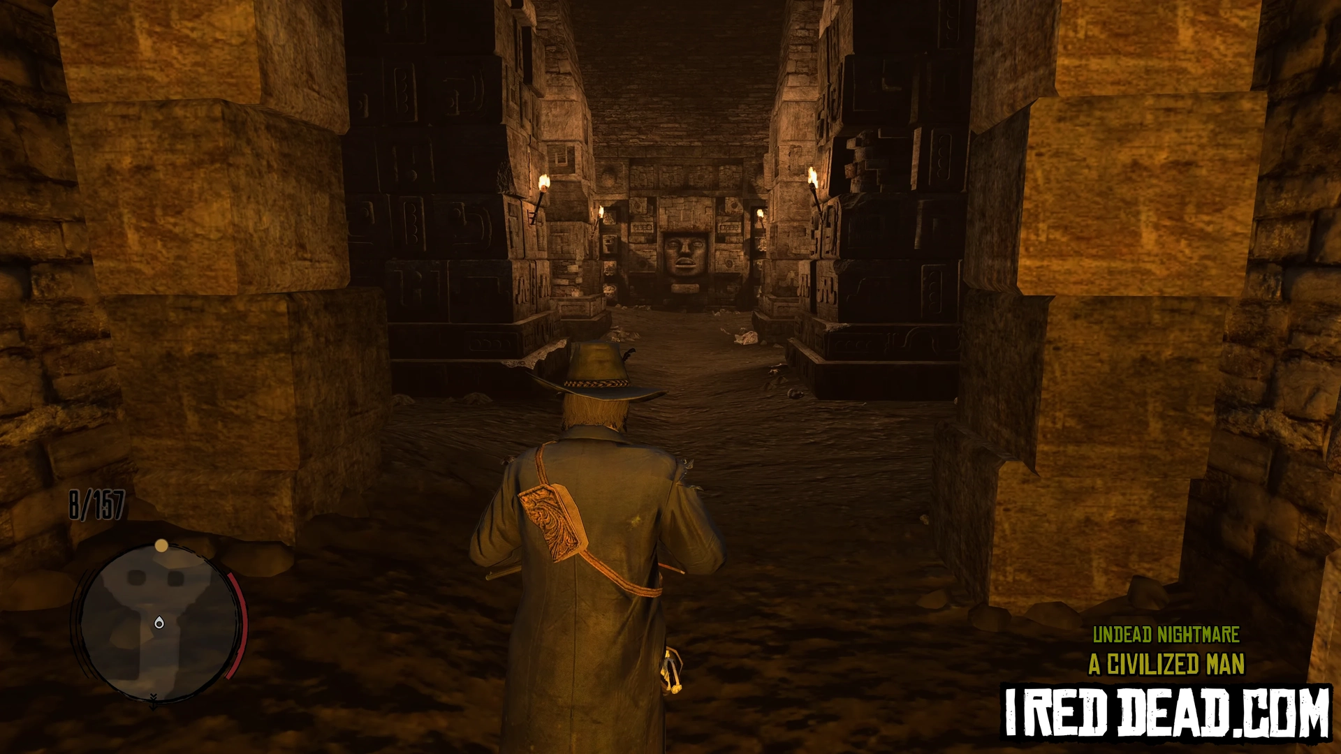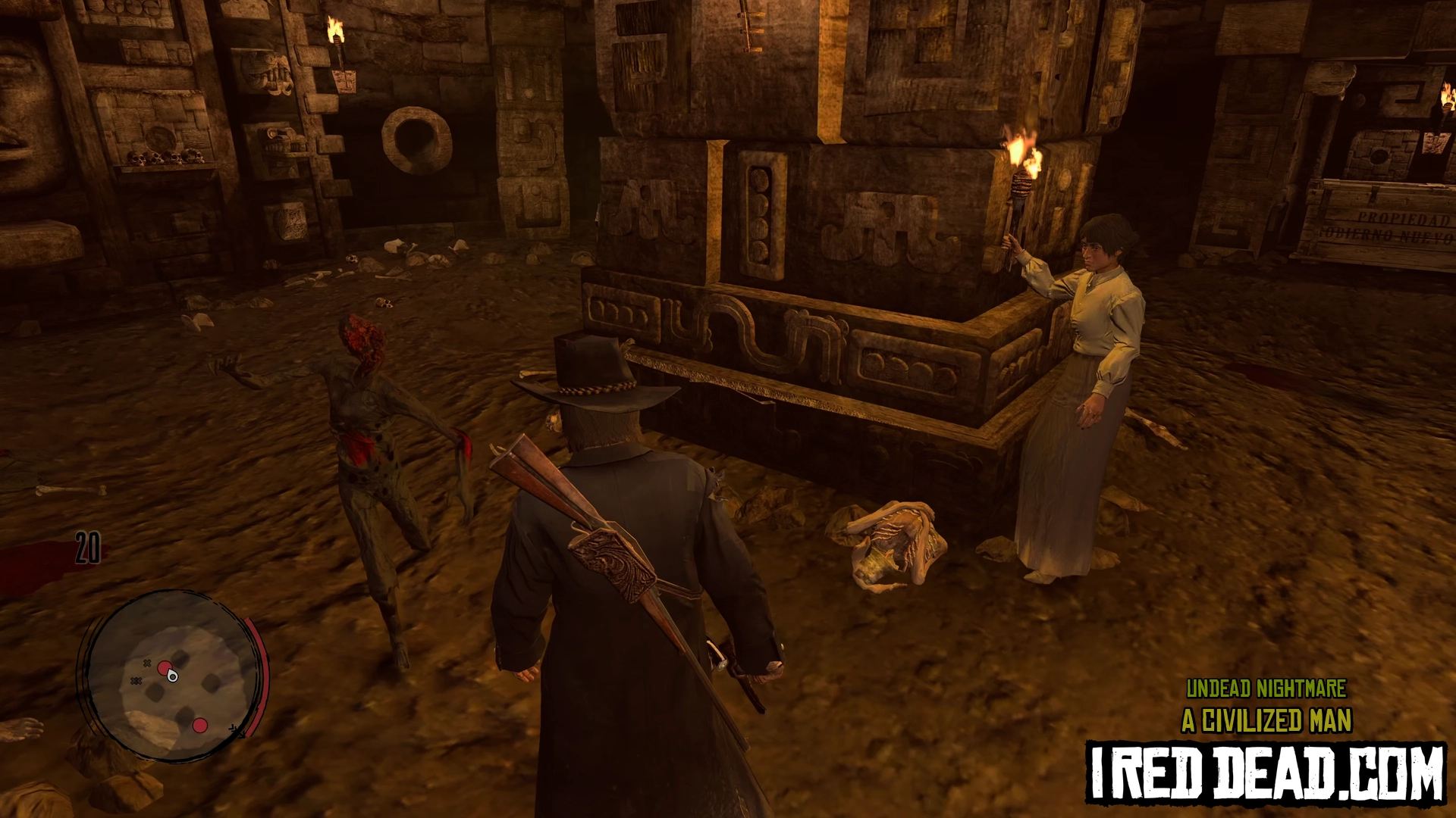 Walk towards the altar and a cutscene shows John walking up to the ledge below a stone face.