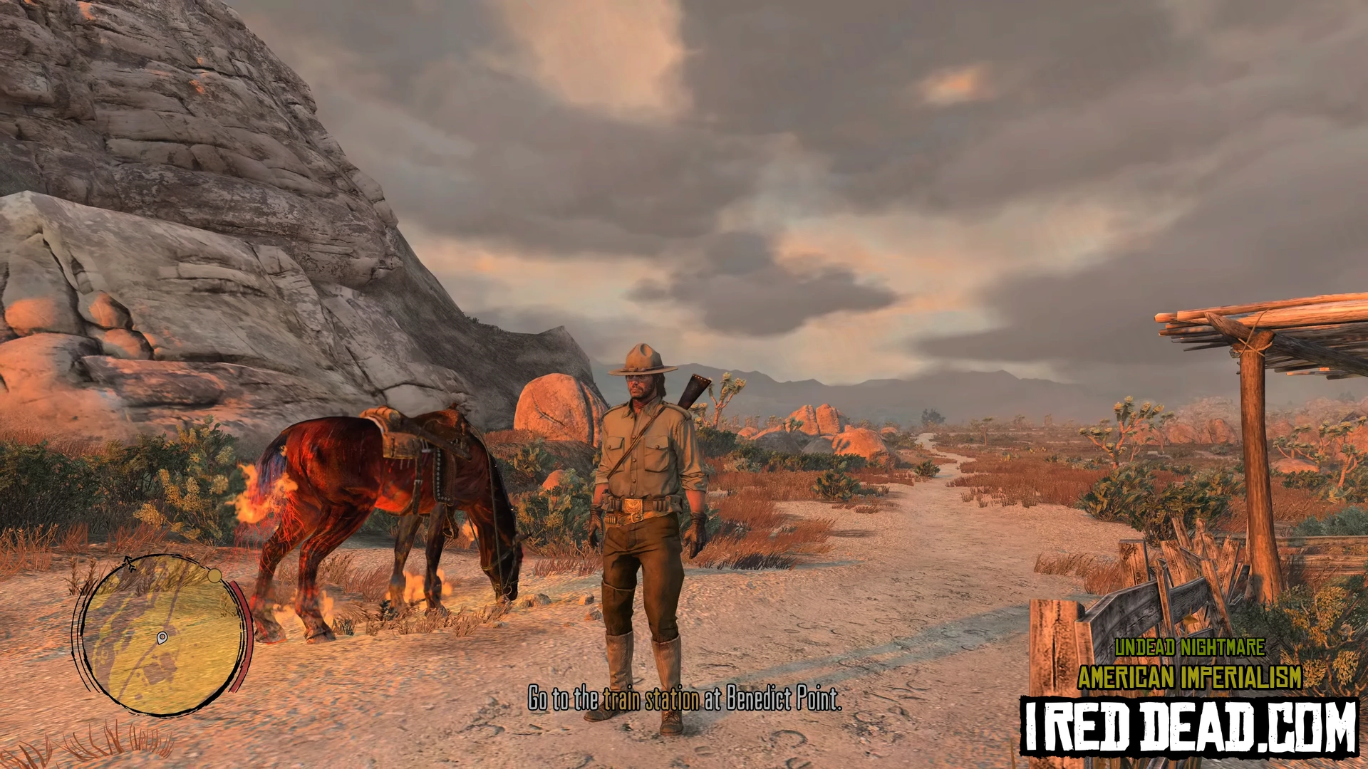 There is a tent on the Mexico side and your horse will be waiting next to it. You can now travel freely between the US and Mexico. If you walk to your horse and turn back the train will probably disappear. You are told to travel to Las Hermanas.