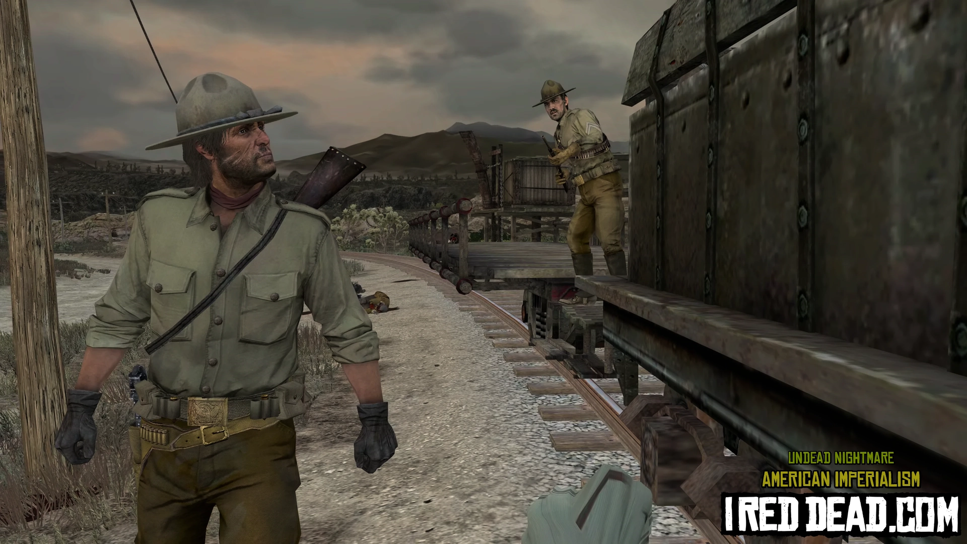 When most or all of them are dead, a few more will rise up from the ground. Kill them all and get back to the train. John is the only one left.