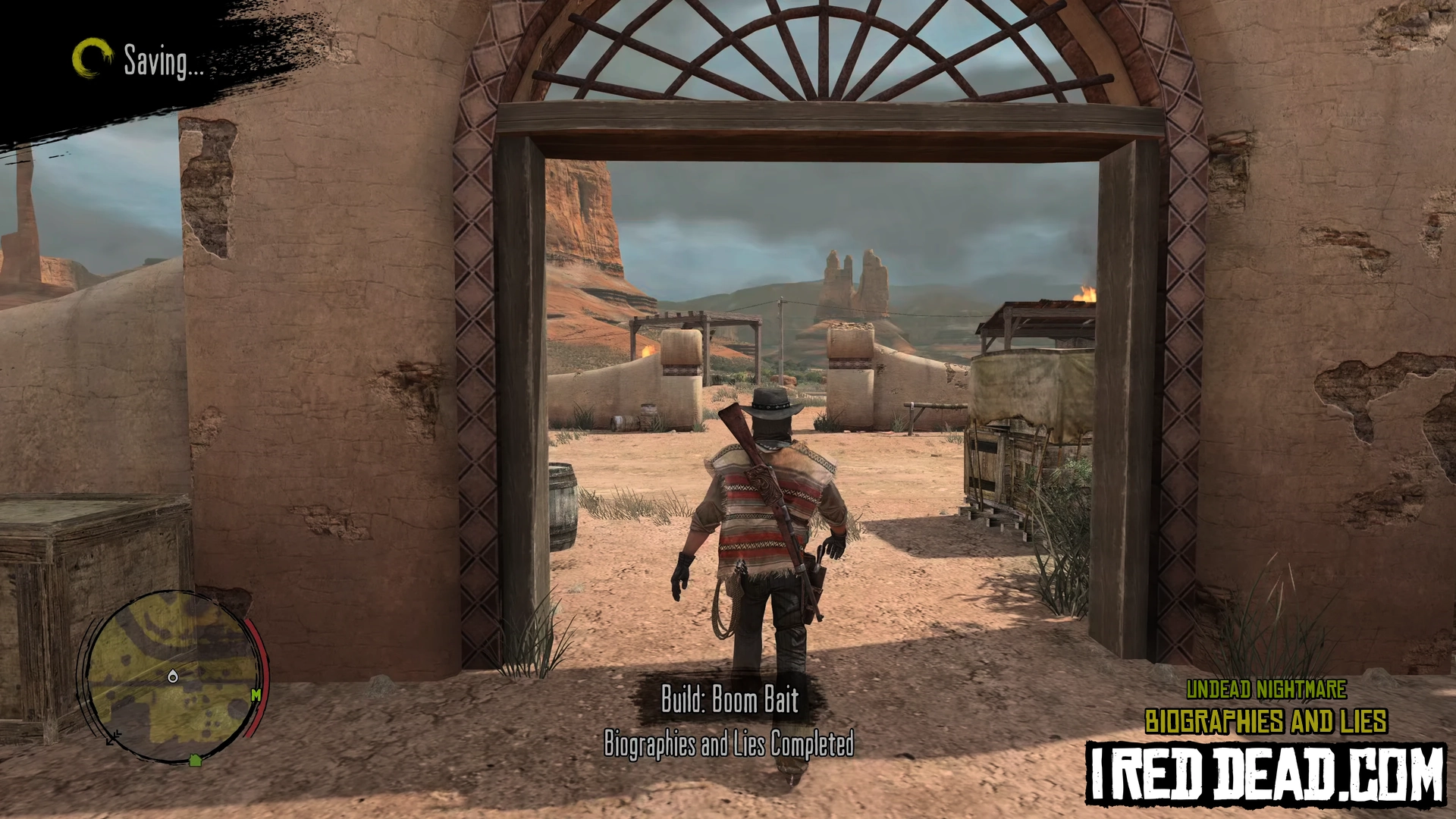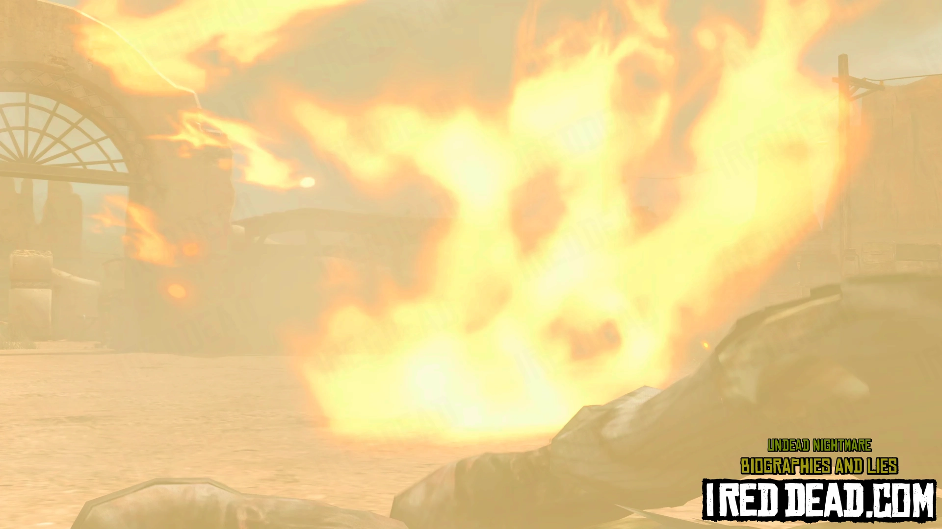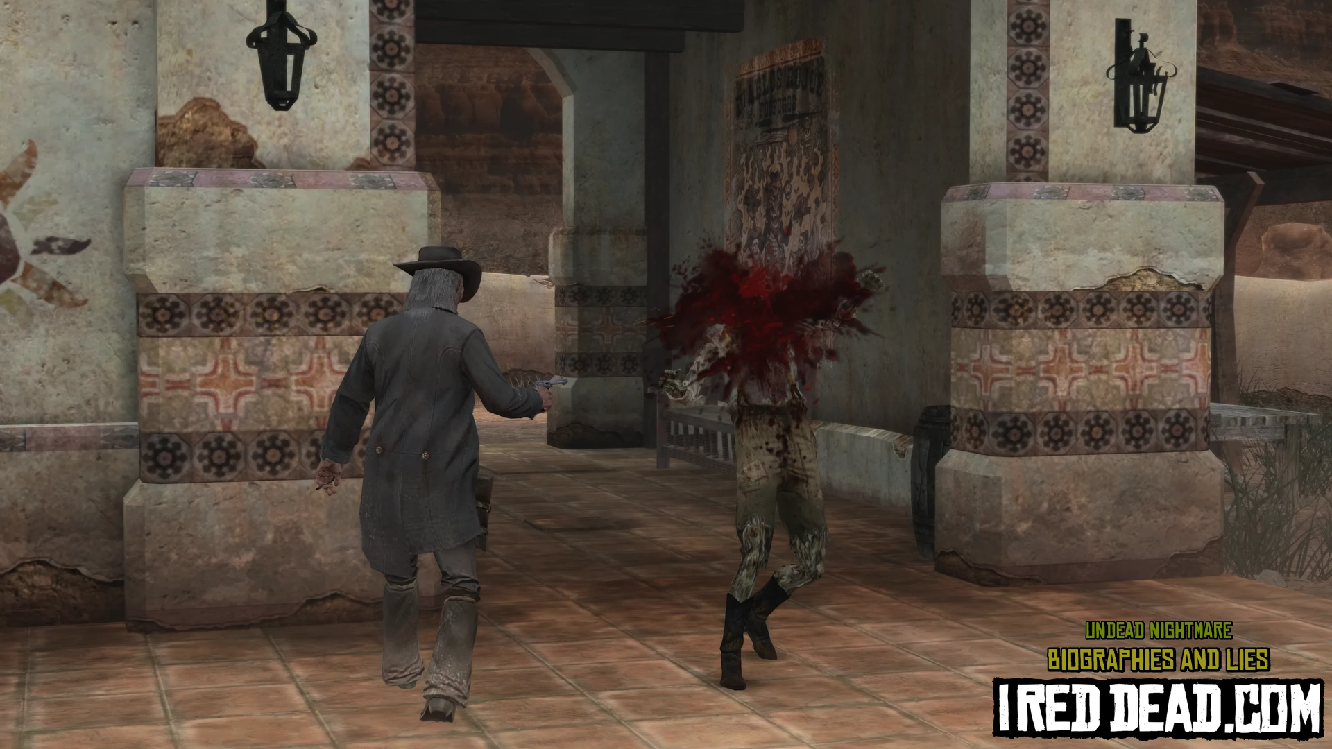 The zombie heads towards the impact but Ricketts shoots the dynamite causing it to explode and take out the zombie.