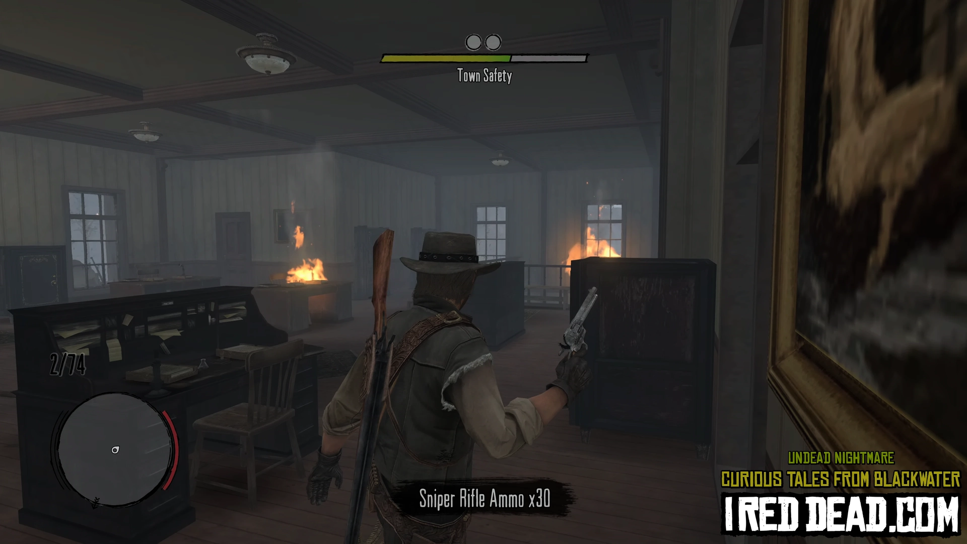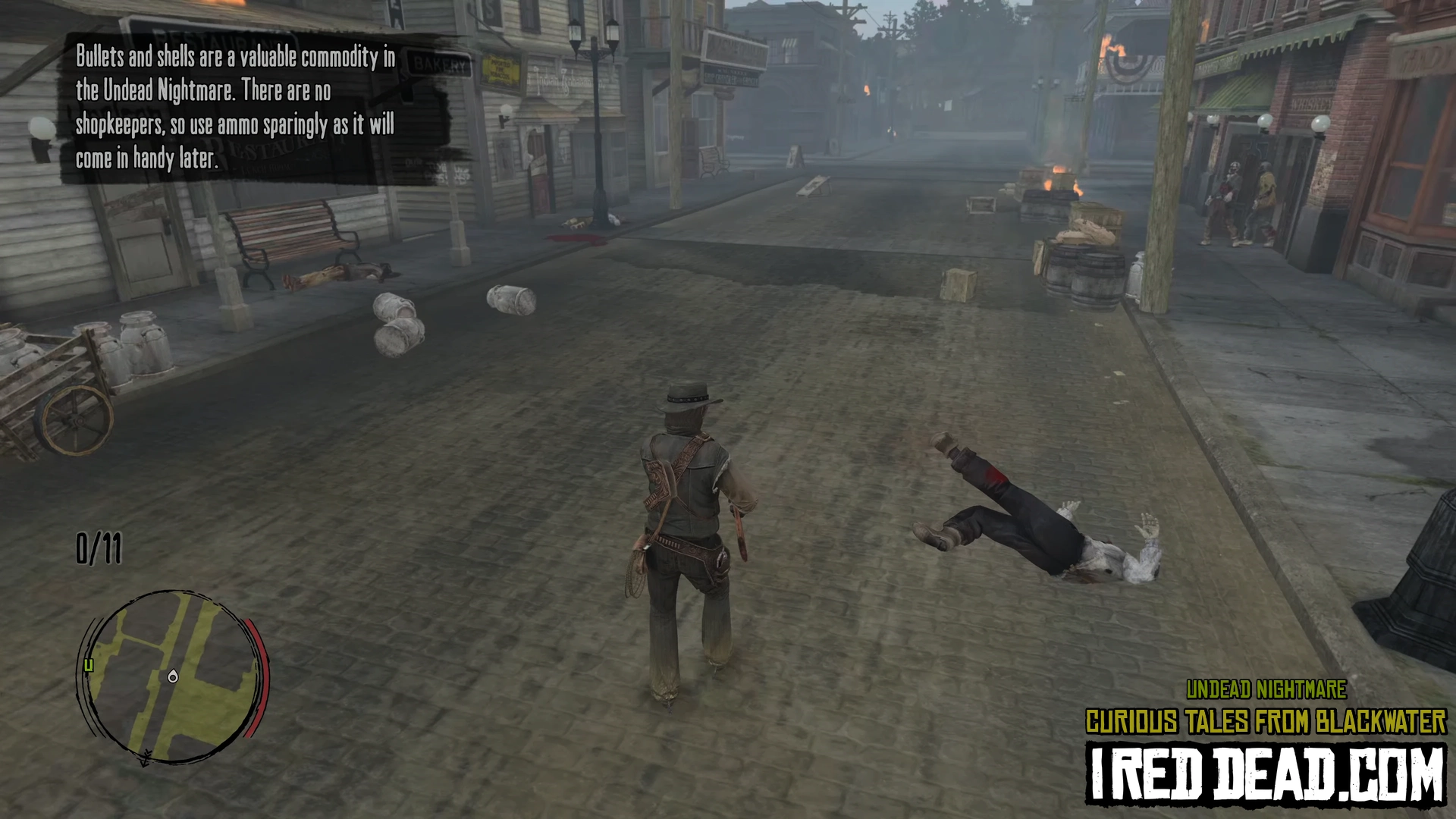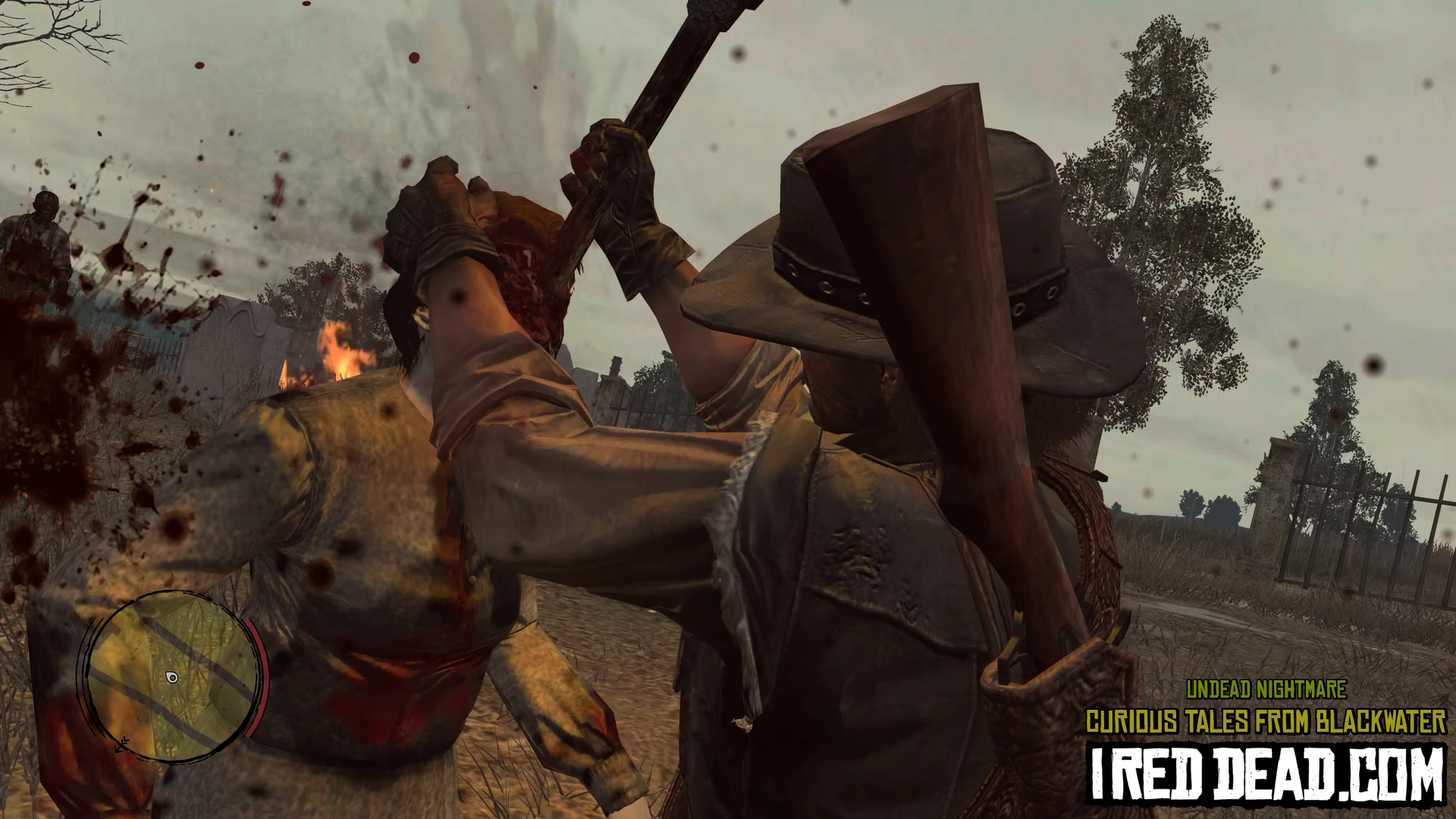 - For cemetery clearing, the order of burning the coffins does not matter. Use your torch to fend off enemies as much as possible to save ammo and Dead-Eye. A good trick is to have the zombies chase you past a burning coffin so they ignite and slowly lose health before dropping to the ground. Like the torch, they might need to be reignited a second time to finish the job. This works for the "boss" zombie as well. The gravestones make good obstacles for you to run around and gain distance from the zombies.