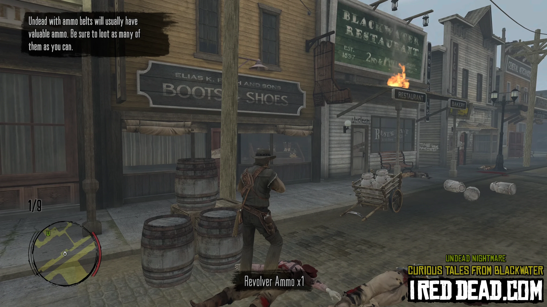 Remember to always aim for the head and conserve Dead-Eye. Each coffin torched yields ammo.