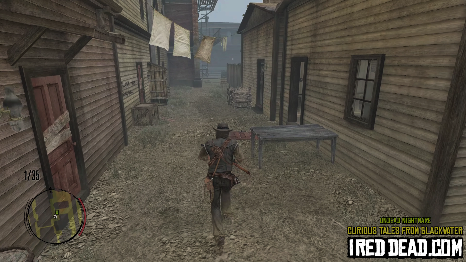 Besides the warnings, you'll find Blackwater completely empty. You won't be able to call your horse though, so move on foot to the "U" marker.