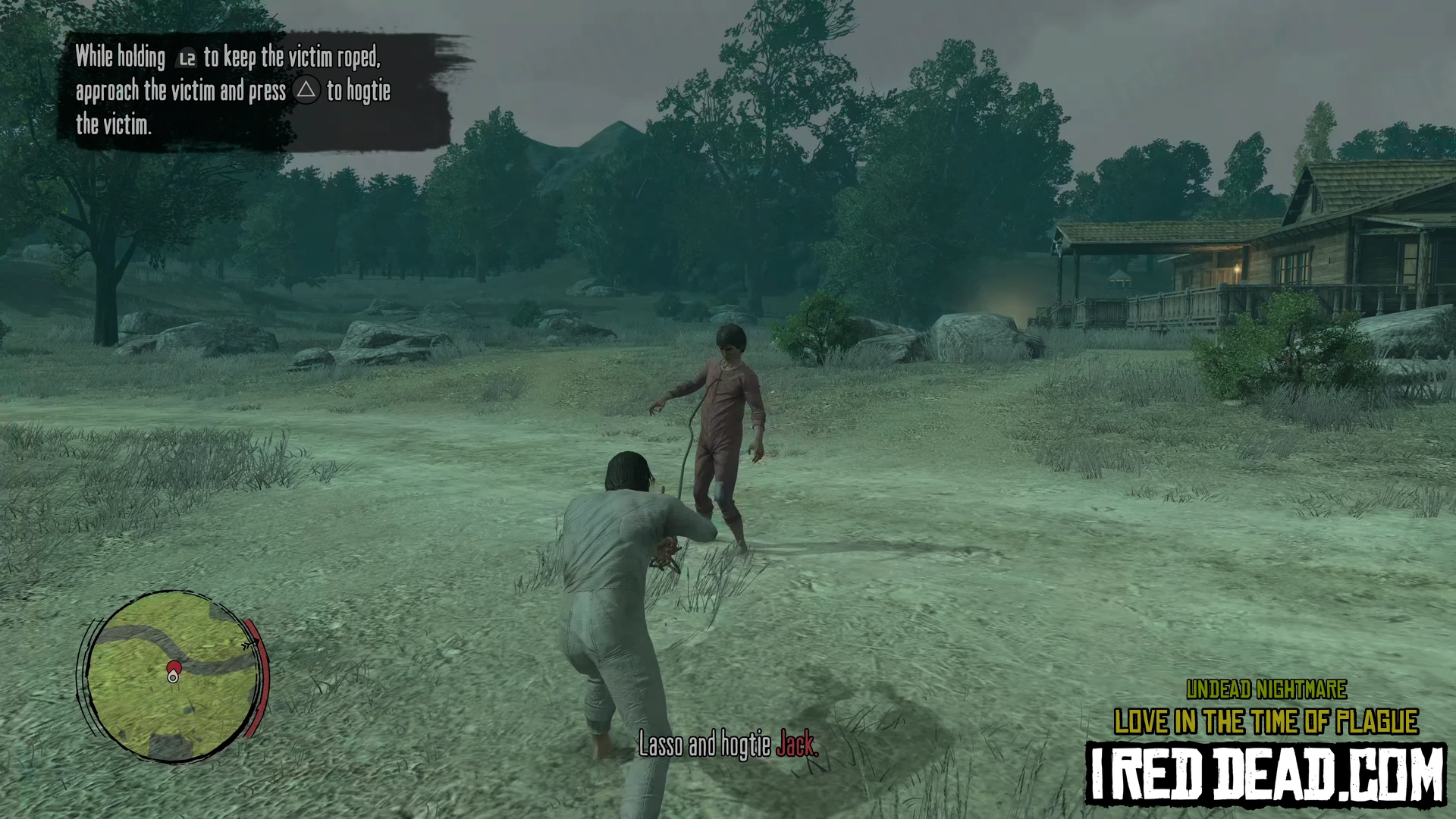 - When you lasso Abigail and Jack, pull them in close and tap the button to hogtie as soon as possible.