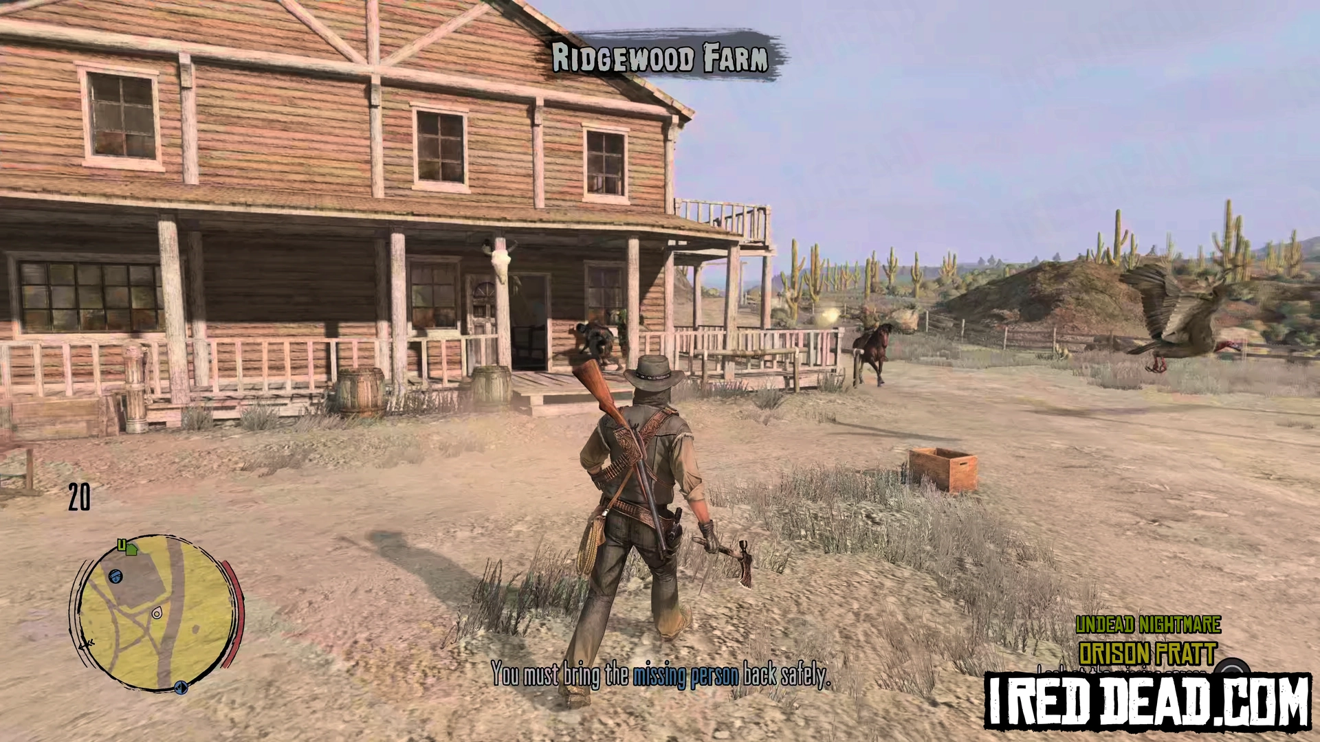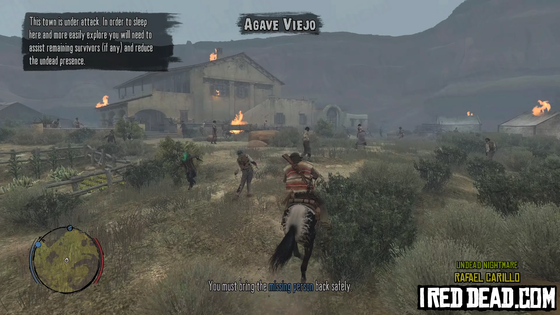 Upon taking the poster the location of the person will appear on your map. Go to their location and fight off the zombie hordes. When enough zombies have been killed the missing person will feel safe enough to leave with you. Mount your horse and allow them to hop on. Fight off the remaining undead and head back to the safe zone you obtained the poster from.