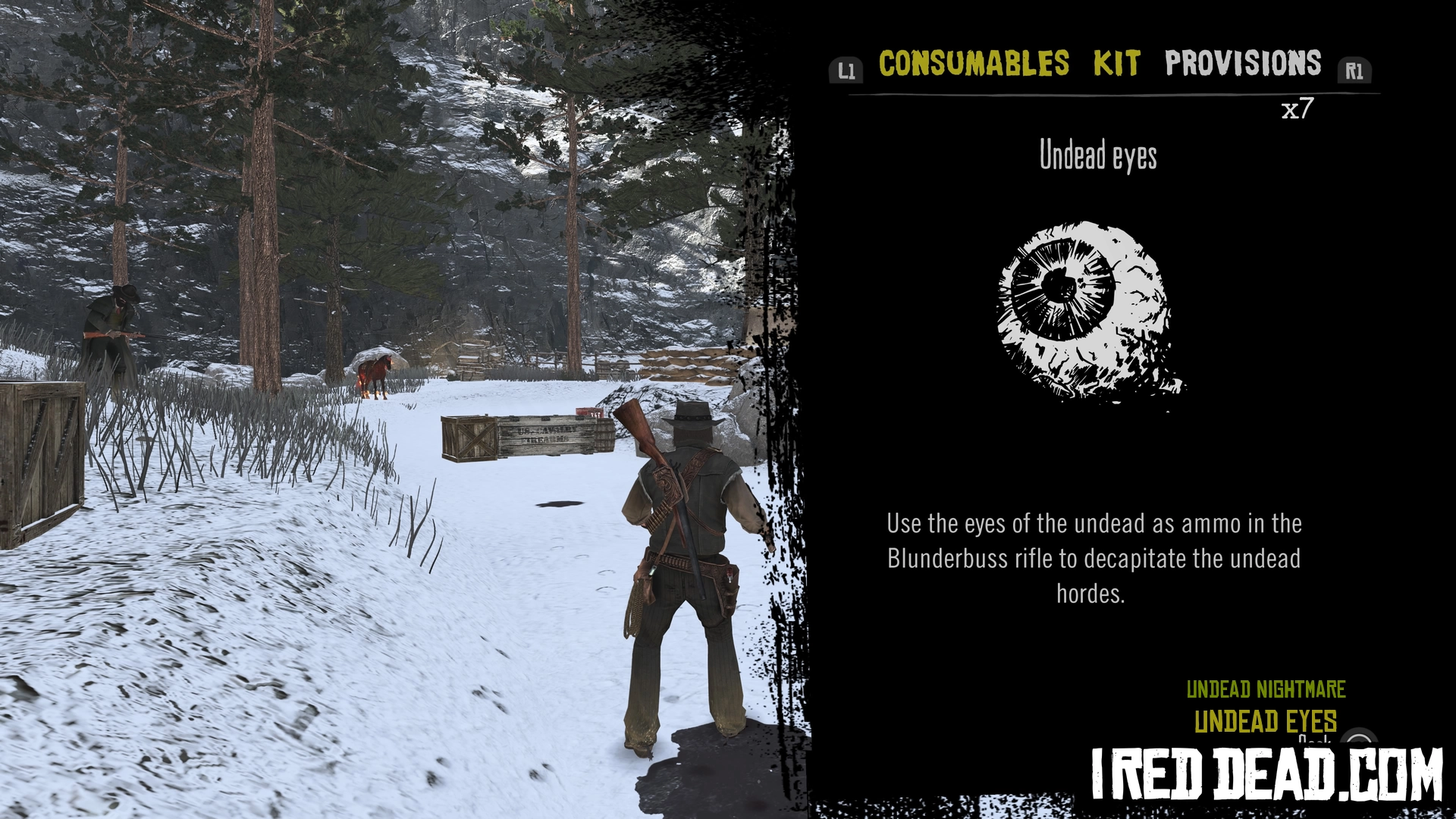 Use the eyes of the undead as ammo in the Blunderbuss rifle to decapitate the undead hordes.