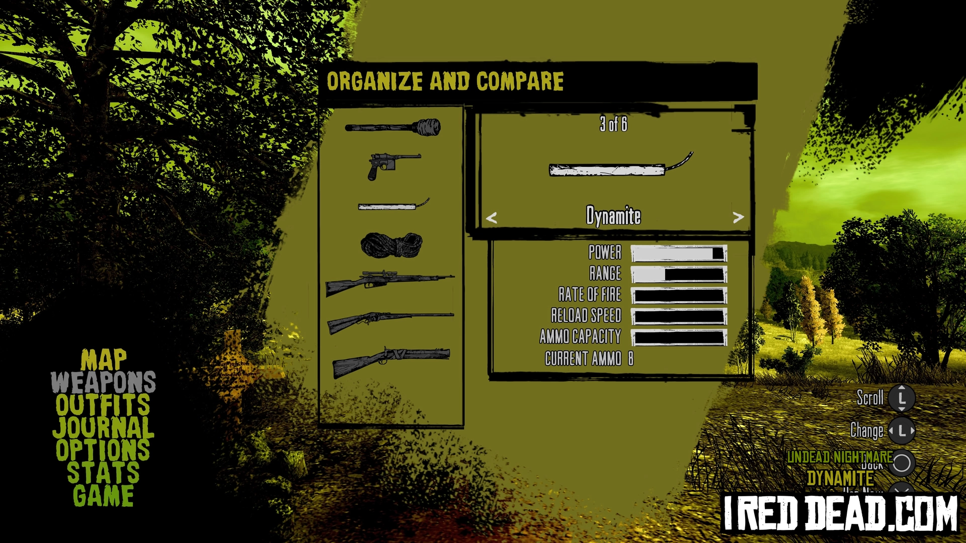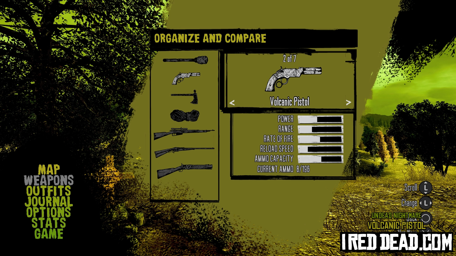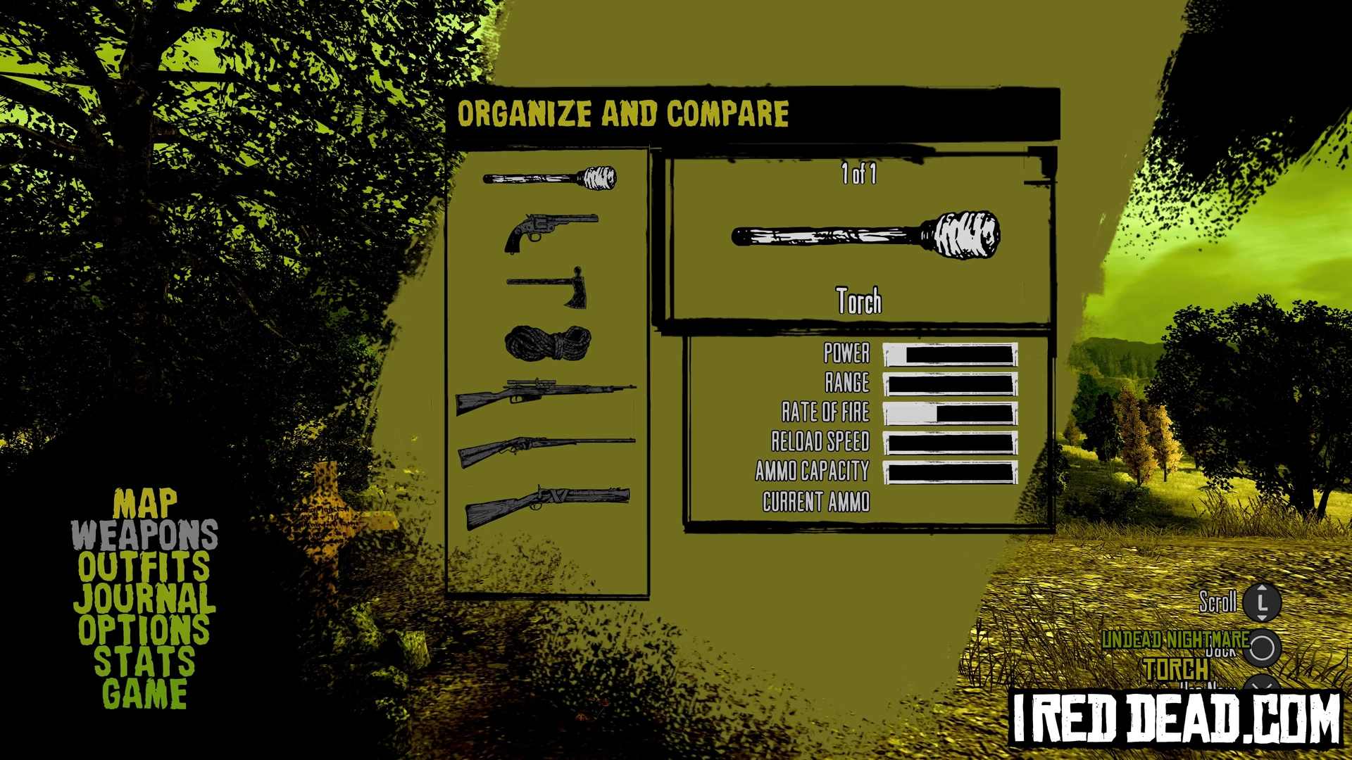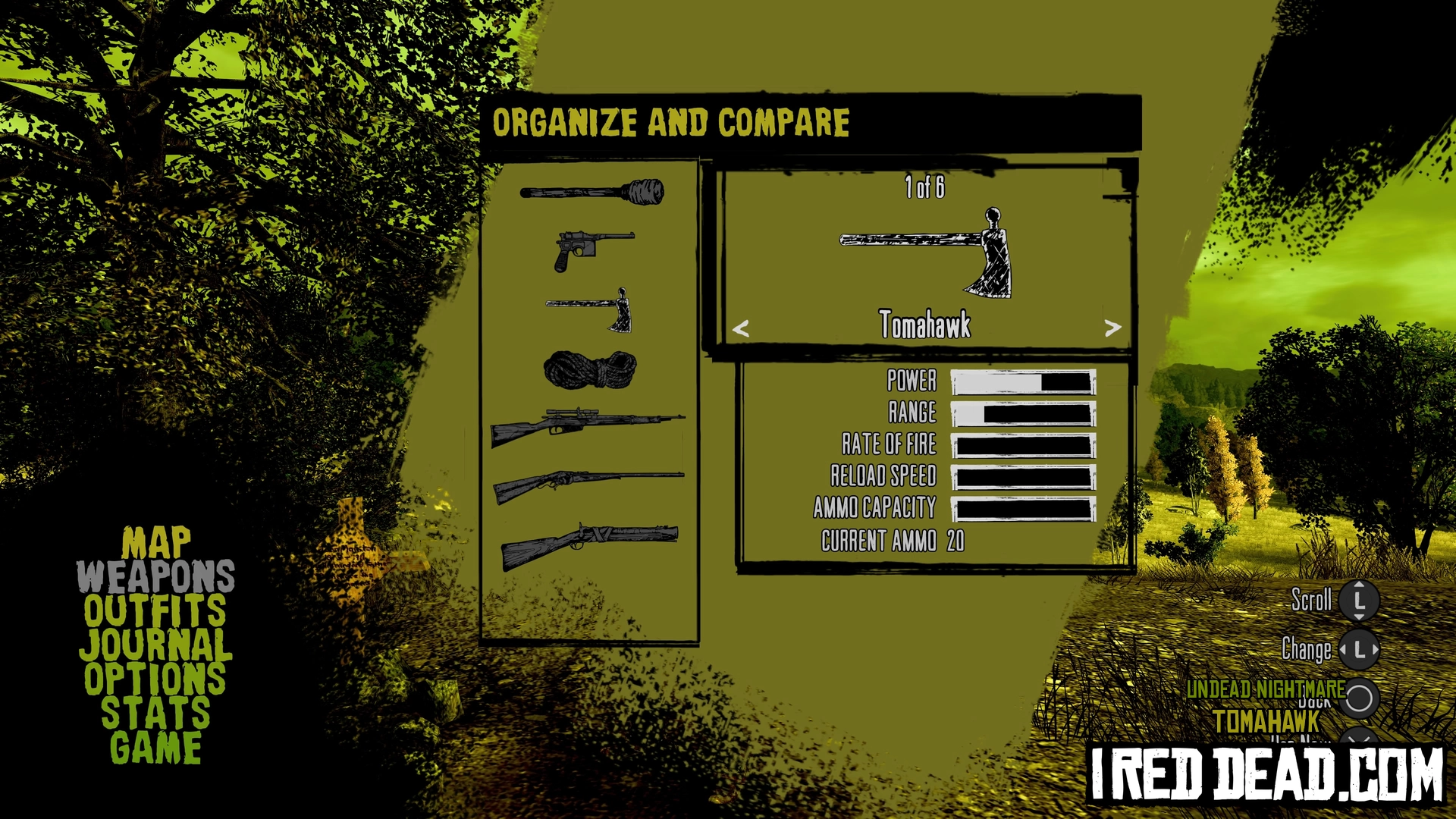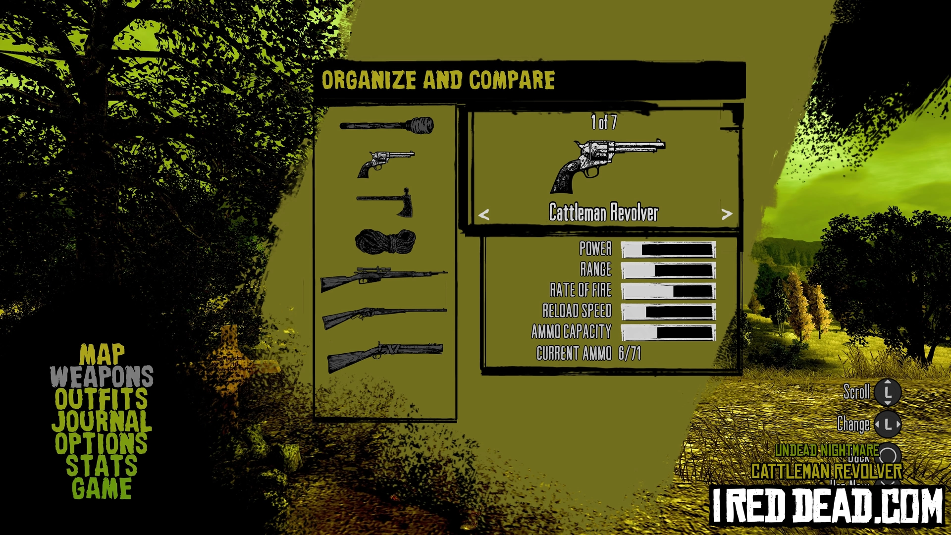There are 31 weapons to acquire in Red Dead Redemption: Undead Nightmare. Read all about their stats and how you can unlock them.